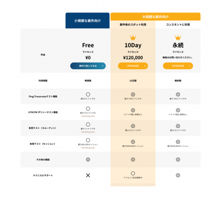すべての機能を10日間ご使用いただけるプランです。ライセンス期限内はテクニカルサポートもご利用いただけます。スポットでの大規模案件などでご利用いただきやすいプランです。