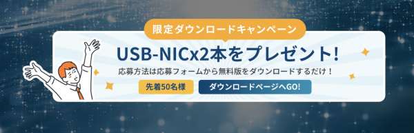 「Freeライセンス」の提供開始を記念して、EXEファイルをダウンロードいただいた方にNEEDLEWORKで動作検証済みのUSB-NIC(2本)を、先着50名様にプレゼントいたします。限定ダウンロードキャンペーン用フォームからお申し込みください。