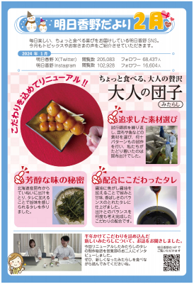 和菓子専科・明日香野が毎月発行している広報誌「明日香野だより」は、明日香野とお取引いただいている関係者様にその時期にあった明日香野関係のニュースをお知らせしています。