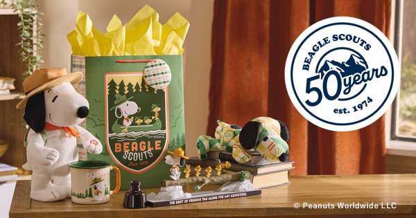 スヌーピーが率いる探検隊「ビーグル・スカウト」は、2024年でPeanutsTMのコミック初登場から50周年。株式会社日本ホールマークは、2024年2月5日(月) にビーグル・スカウト50周年グッズを発売しました。