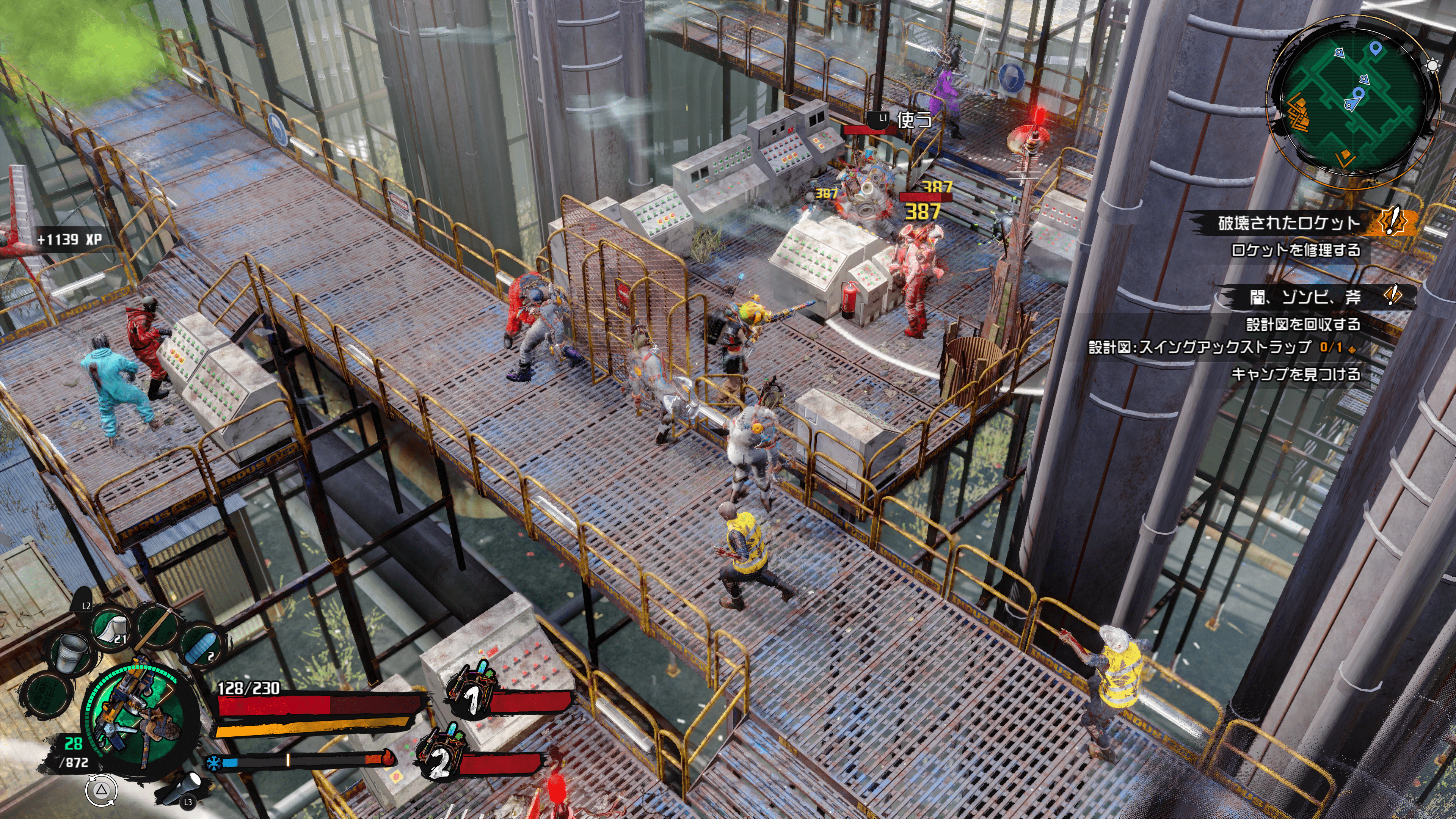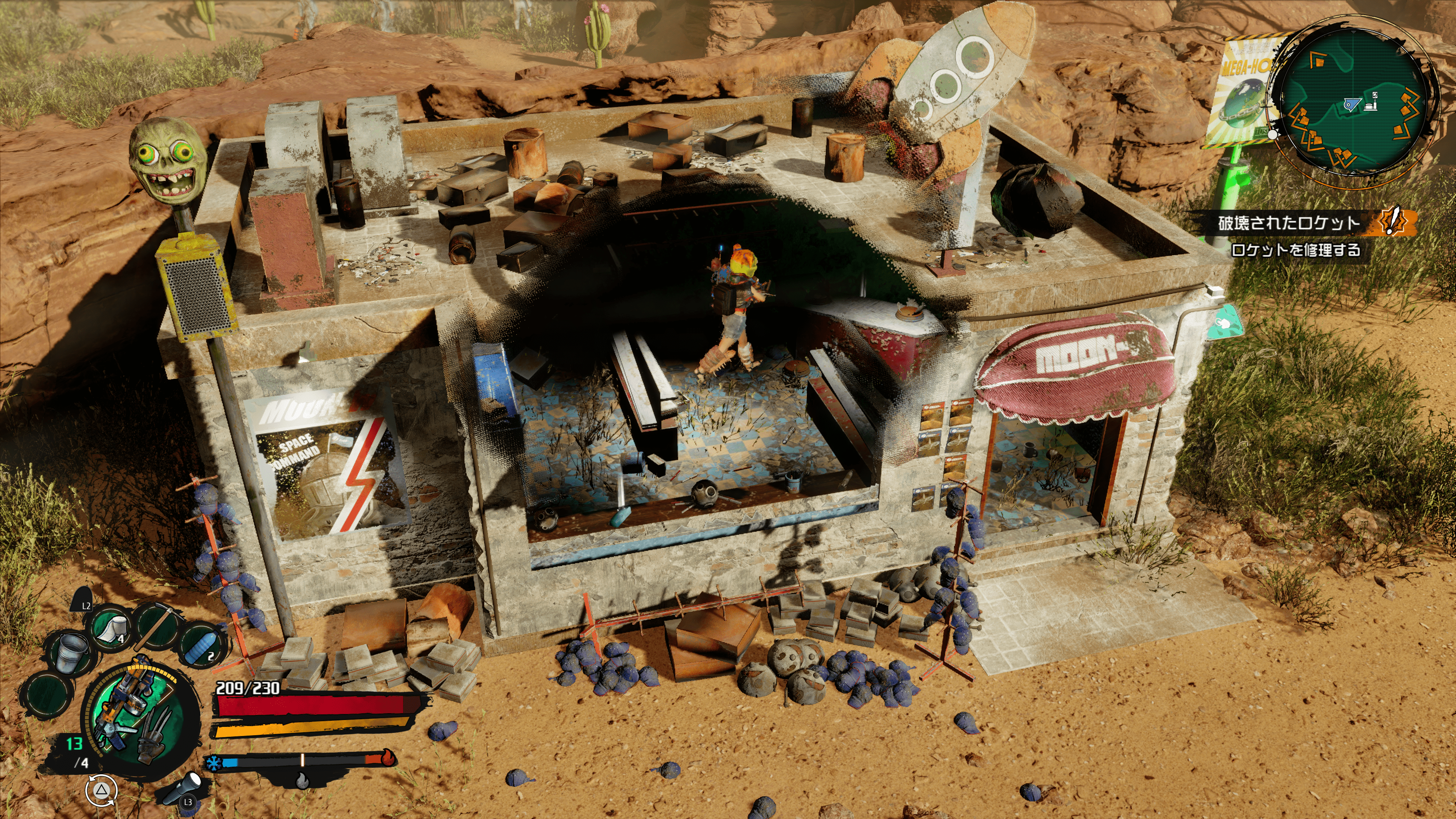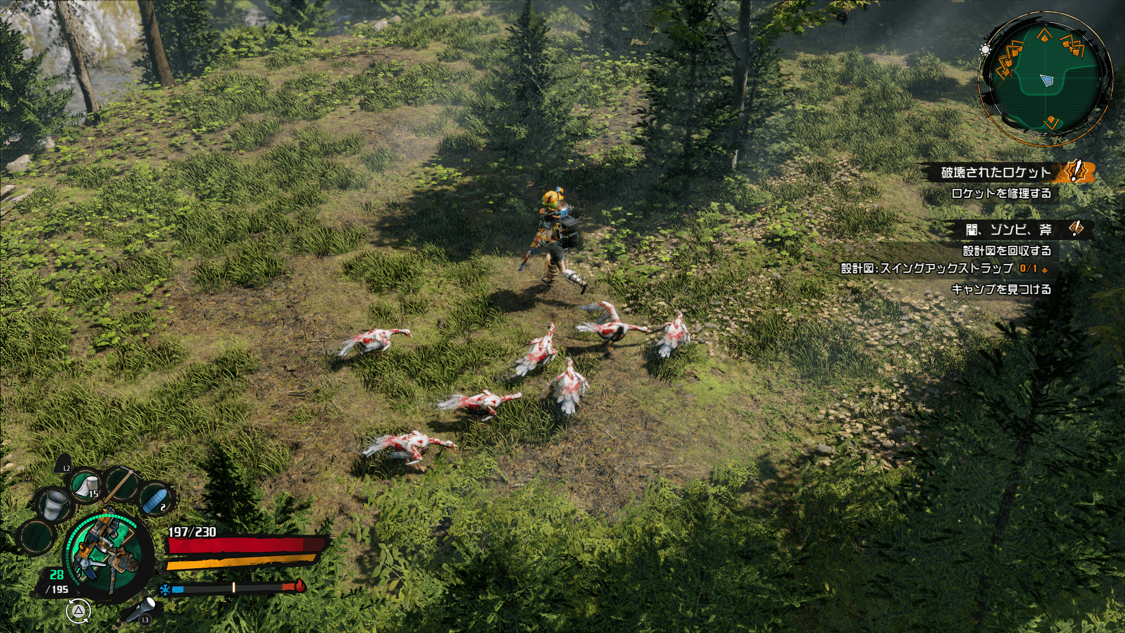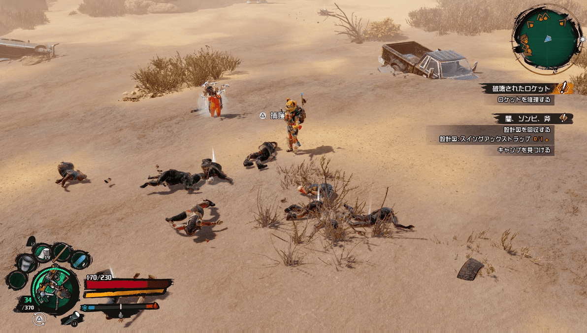 クラフト武器や防具を作ろう:この土地にはいろんな素材があって、それらを使ってクレイジーな武器や防具を作れます!自分もゾンボットもカッコいい装備でおしゃれしてから戦いましょう!