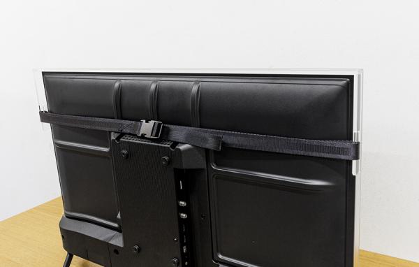 保護パネル側面からテレビの背面へしっかりとベルトで固定するため、お子様やペットがいるご家庭でも安心してご使用できます。