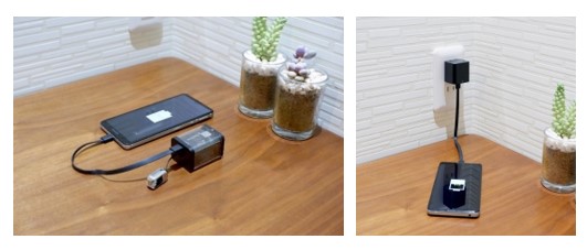 コンセントに挿したままのACアダプタに、磁気でモバイルバッテリーが付くので、置くだけでモバイルバッテリー本体の充電を開始できます。そのため、ケーブルを抜き差しする手間がなく、簡単にご使用いただけます。充電中に本体が動いたり、外れたりすることもありません。