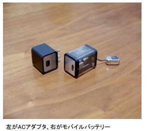 (1) 磁気によってモバイルバッテリー本体とACアダプタが接続可能