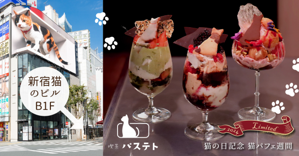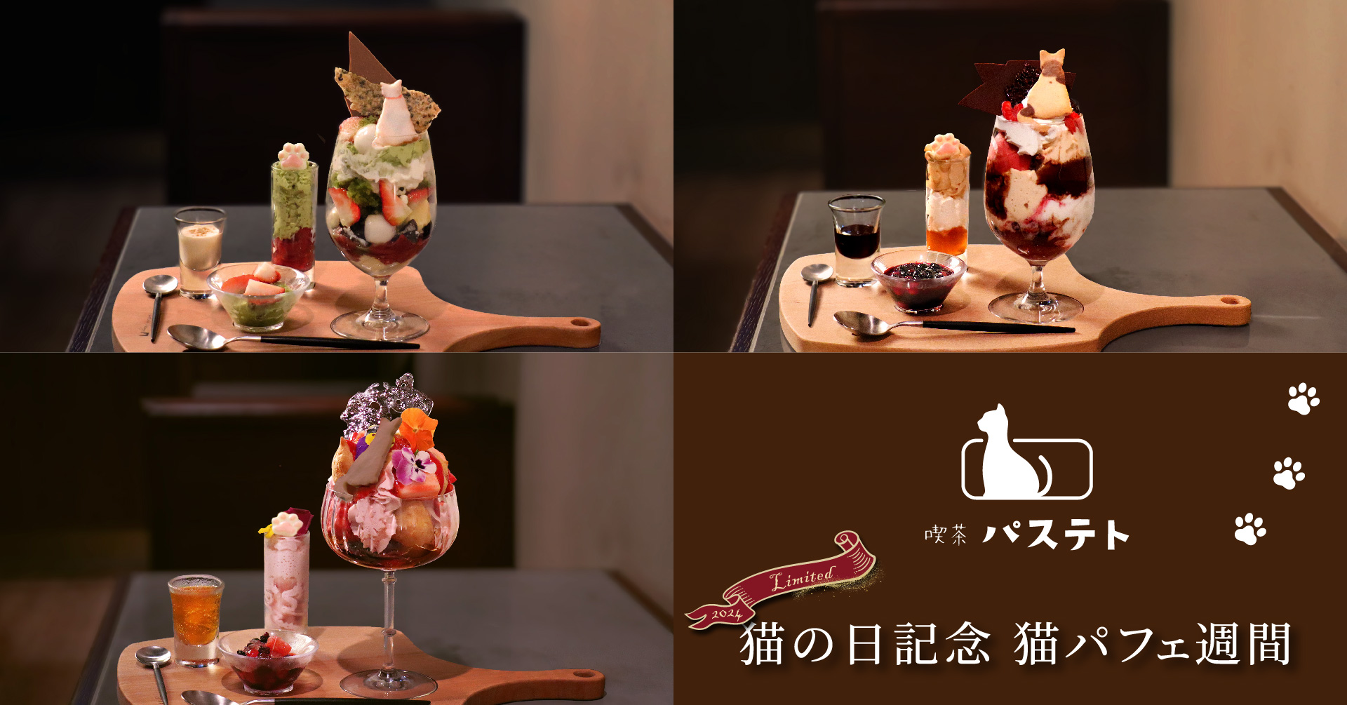株式会社アズフードシステムズ(本社:東京都中央区、代表取締役:森田威)が運営する、新宿駅東口すぐの喫茶店「喫茶 パステト」は、2月22日(水)の猫の日を記念して、全てのパフェに猫クッキーを添えて提供する『猫パフェ週間』を、2024年2月19日(月)より25日(日)まで開催いたします。