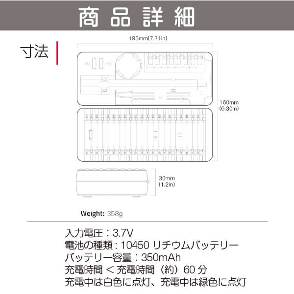 【 使用回数 】 350mAhのバッテリー容量で約400回の使用可能です。