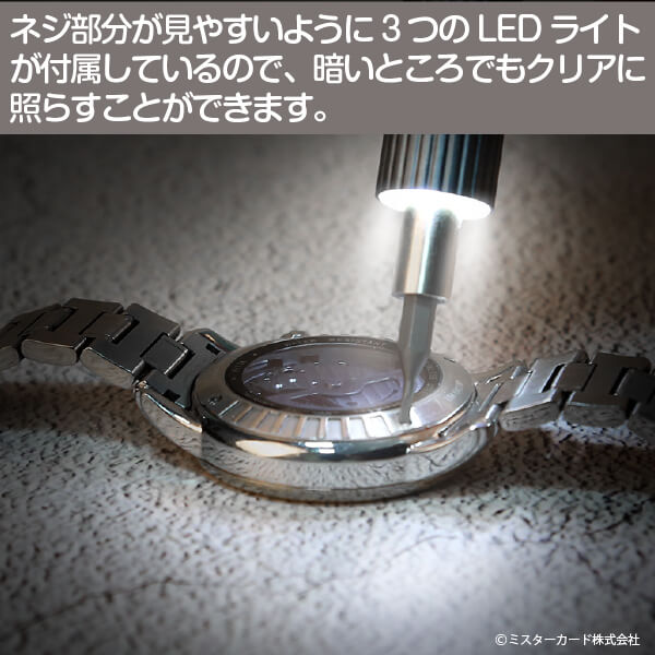 【 手元を照らすLEDライト】 ネジ部分が見やすい3つのLEDライトを搭載。