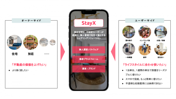 matsuri社の展開する「StayX」とは、ソフトウェアを主軸に、空間の価値を最大化するソリューションです。