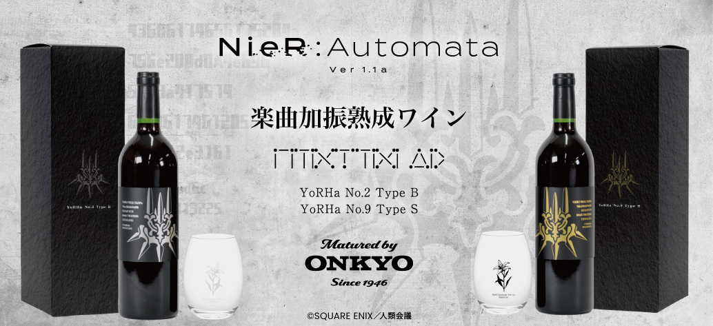オンキヨー株式会社(所在地:大阪府大阪市、代表取締役社長:大朏 宗徳)(以下、「当社」といいます。)は音響機器ビジネスにおいて長年培ってきた音や振動に関する技術ノウハウを異業種に展開し、新しいビジネス創造を進めております。今回、新たな音楽食品ビジネスについて、山梨県甲州市勝沼のアパレルを中心に事業を手掛けるJUNグループのワイナリー「シャトージュン株式会社」との協業において、TVアニメ 『NieR:Automata Ver1.1a※1』の楽曲群からオリジナルプレイリストを作成し樽に聴かせた音楽加振熟成ワインを2月22日(水)15:00から2Bボトル、9Sボトルの販売をすることが決定しましたのでお知らせいたします。