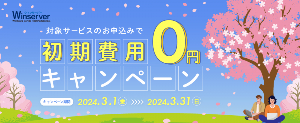 Winserver(ウィンサーバー/運営会社:アシストアップ株式会社、所在地:大阪府大阪市、代表取締役:青木 勝彦)は、2024年3月1日(金)~3月31日(日)の期間、初期費用0円キャンペーンを実施いたします。