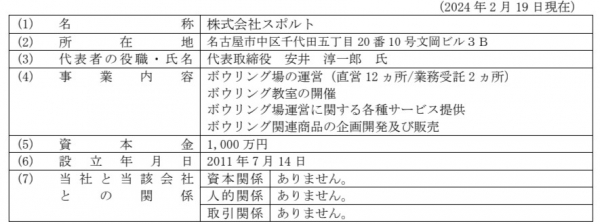 スポルト社は、2023 年5 月1 日付「今後の土岐グランドボウルを通じたプロモーション展開に関するお知らせ」でご紹介させて頂いた「健康ボウリング教室」や各種イベントにも積極的に取り組んでおり、ボウリング場運営事業をさらに強化したいというスポルト社の意向と、収益基盤の安定性を強化したいというマーチャント・バンカーズ株式会社の意向が合致し、基本合意に至ったものであります。