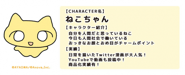 「ねこちゃん」はX(旧Twitter)で人間社会で働く「ねこちゃん」が生きづらい世の中を時におかしく、時にブラックにぼやくイラストや動画が人気のキャラクター。