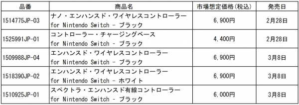 新商品コントローラーに加え、Nintendo Switch用のケースや収納バック等も春頃発売予定。