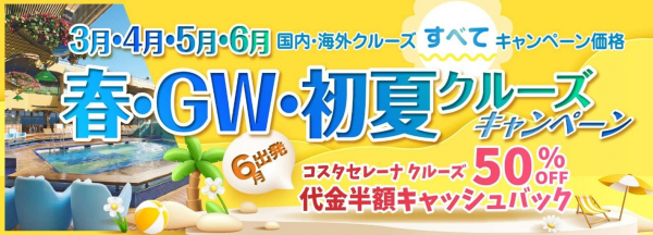 クルーズ予約サイト「ベストワンクルーズ」運営の株式会社ベストワンドットコム(本社:東京都新宿区、代表取締役:澤田秀太)は、本日より「春・GW・初夏国内・海外クルーズキャンペーン」を開始いたします。なお、3月20日(水)までの期間限定のキャンペーンとなります。