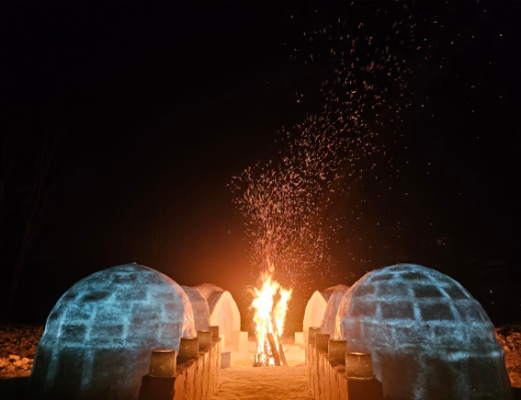 羊蹄山麓エリアにあるルスツやニセコのスキー場には、世界で最も上質な雪質JAPOW(Japan Powder)を求め、今、世界中から観光客が訪れます。そんな注目エリアに位置する喜茂別町には、夏はライダー、冬は世界中から旅行客が集まります。そんな人々の拠点として、小学校の廃校を活用したカフェやゲストハウス「雪月花廊」があります。ここで、2024年2月9日~12日に『勝手に喜茂別冬まつり』が開催されました。全国から雪月花廊のファンが有志で集まり、4日間でイグルー作りを体験。最終日は4基のイグルーの間でキャンプファイヤーを囲み、参加者同士の交流を深めました。
