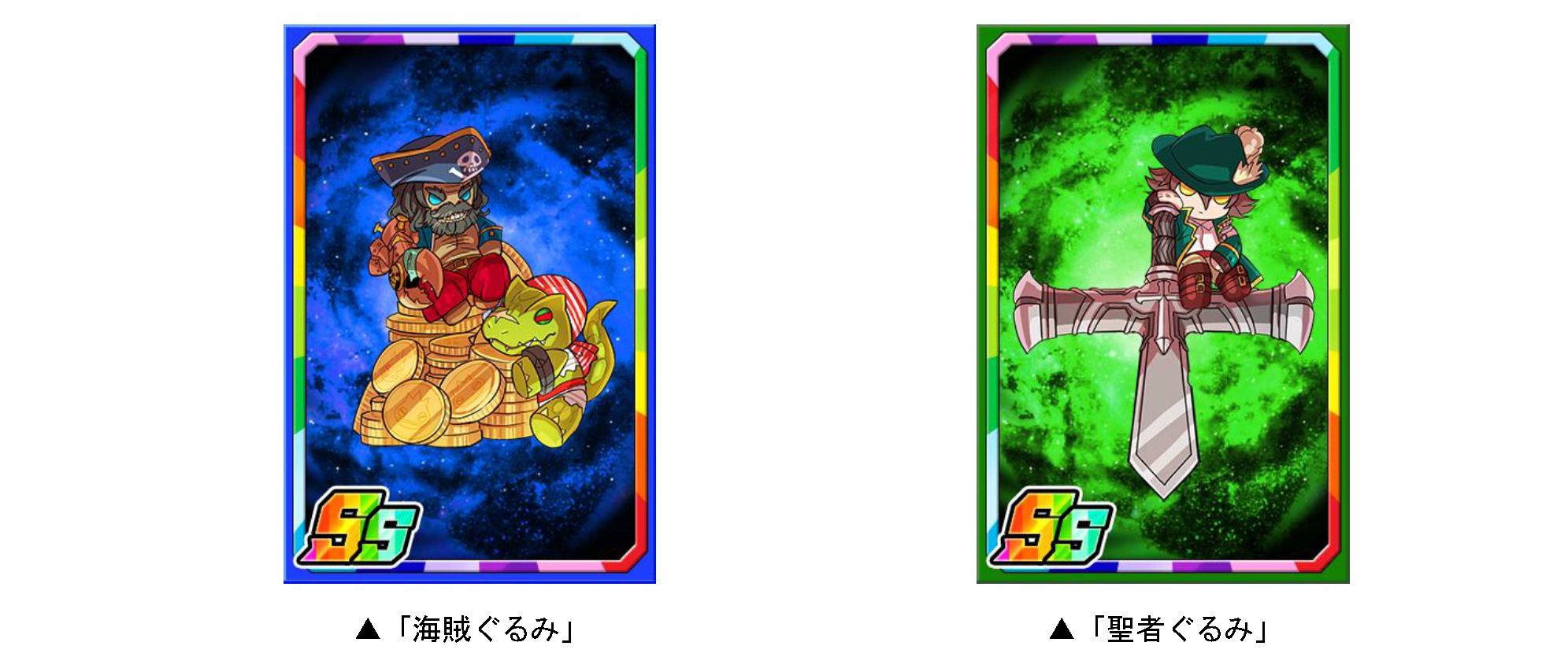 ダンジョンのボスモンスターを倒すと、まれに新たな限定子分カード「海賊ぐるみ」「聖者ぐるみ」が手に入ります。限定カードは複数枚集めると子分スキルの効果が強力になります。