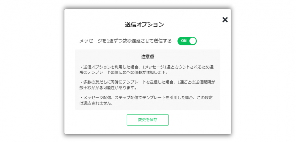 アップデートにより、テンプレート化したメッセージを送信する際に、1通ずつ数秒遅延して送信できるようになりました。
