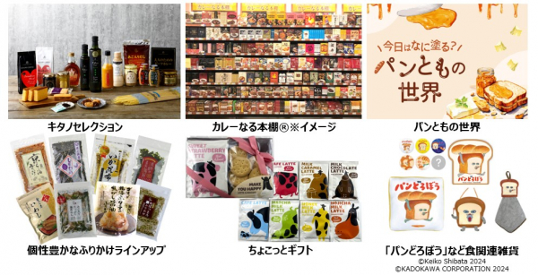 食品だけでなく、食卓を楽しく賑やかにする食雑貨も販売。カレー用食器・カトラリーのほか、オリジナルデザインのジッパーバッグ、エコバッグなどを取り扱います。また、人気絵本シリーズ「パンどろぼう((C)Keiko Shibata 2024、(C)KADOKAWA CORPORATION 2024) 」のグッズも多数取り揃えます。