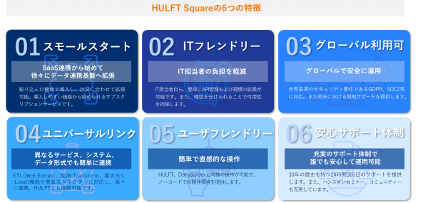 HULFT Squareの魅力は、大きく分けて6つあります。