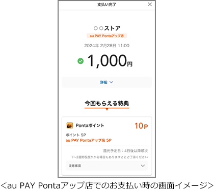 対象加盟店は順次拡大予定です。詳細はこちら(https://aupay.auone.jp/contents/lp/pontaup/index.html?utm_source=au&utm_medium=web&utm_campaign=topics_20240229_20991231)をご確認ください。
