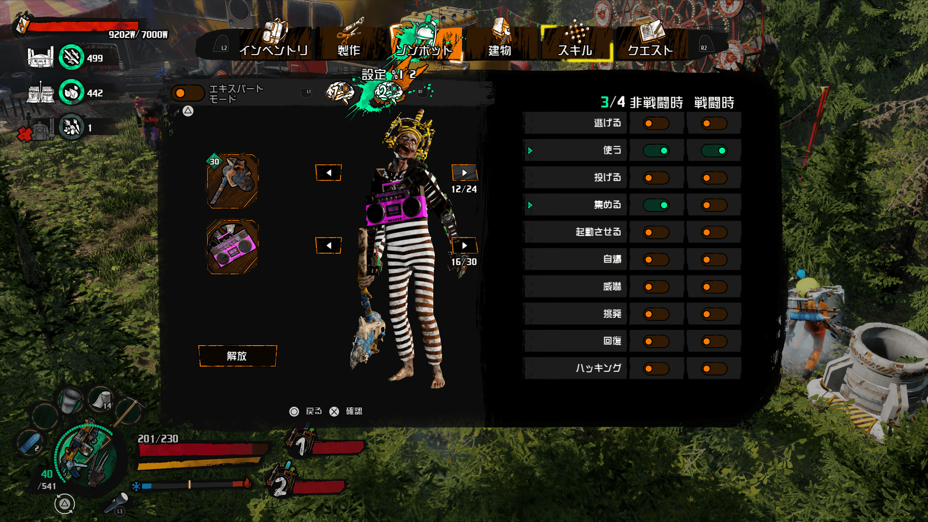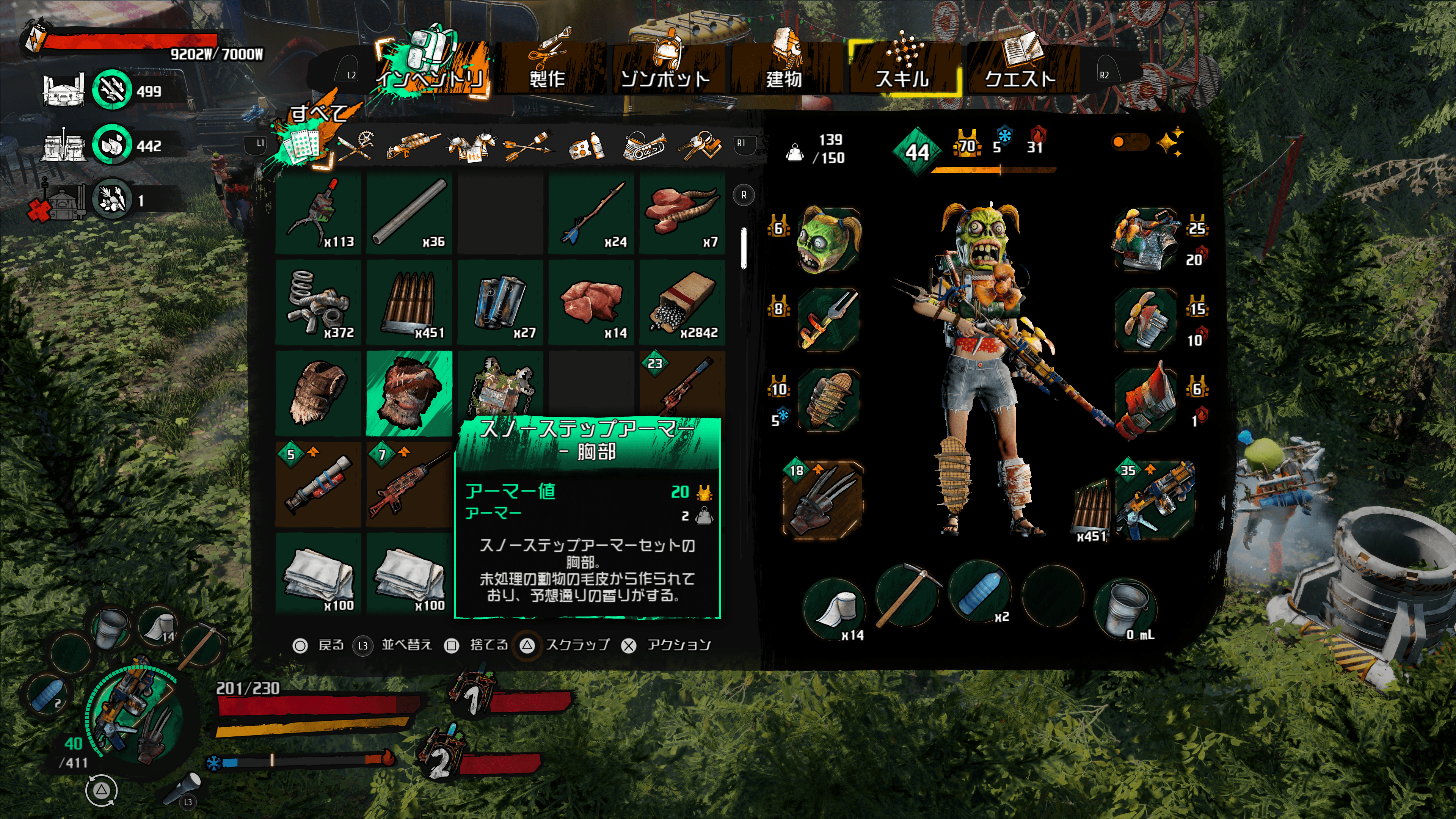 ゾンビを倒しハッキングヘルメットを被せると「ゾンボット」としてプレイヤーに忠実な仲間となります。ゾンボットは2体まで連れて歩くことができ、装備や行動を細かくカスタマイズすることも可能。悪いゾンビとの戦闘や、キャンプ管理も全部ゾンボットにお任せ!