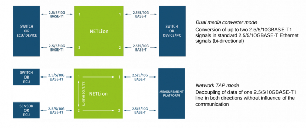 2024年3月6日、ポジティブワン株式会社(本社:東京都渋谷区)は、2.5G/5G/10GBASE-T1対応車載デュアルメディアコンバータおよびネットワークTAP「NETLion 10G」を販売を開始いたします。