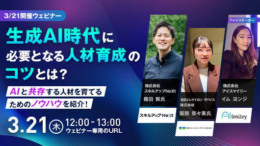 国内最大級のAIポータルメディア「AIsmiley」を運営するアイスマイリー(東京都渋谷区、代表取締役:板羽晃司)は、2024年3月21日(木)12時からAI人材育成をテーマにウェビナーを開催します。