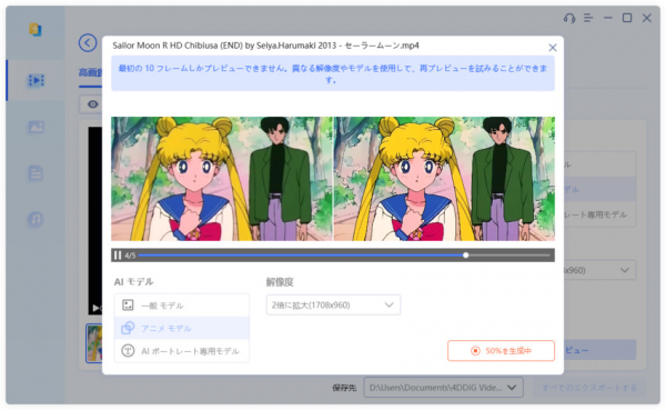 ・高度なAI動画アップスケーリング技術:4DDiG File Repair は、AI技術を活用して動画の解像度を最大8Kまでアップスケーリングすることができます。従来の単純な拡大とは異なり、AIが映像の特徴を学習し、失われた情報を補完することで、自然な高画質化を実現します。