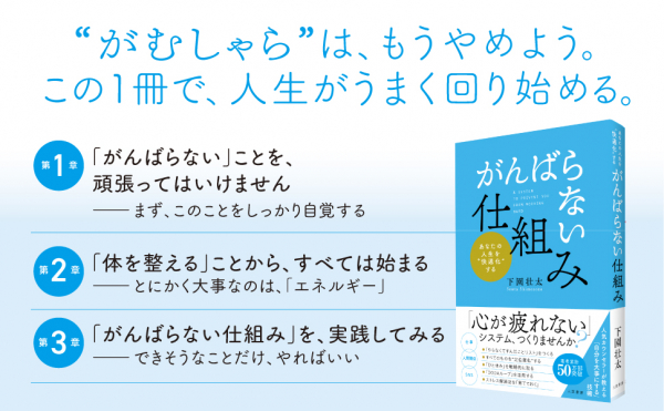 新刊書籍『「がんばらない」仕組み』(著者:下園 壮太)を3月22日(金)に発売いたします。
