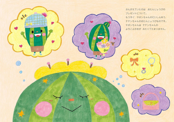 サボンちゃんは、テテンちゃんに喜んでほしくて、プレゼントを何にしようか考えています。