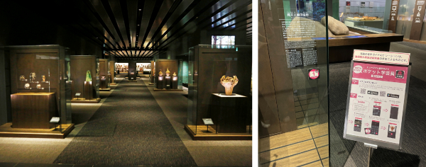 同館では、現在のところ考古展示室と神道展示室の冒頭部分にあたる象徴展示のエリアでポケット学芸員を導入しています。内容は、「縄文土器の造形」から「神仏の顕現」までの各時代の概説で、展示全体の理解につながる部分です。今後、対応する言語や展示を徐々に増やしていきたいとのことです。また音声は、本学の放送研究会の学生によるもので、学生と連携した事業としての役割も担っています。