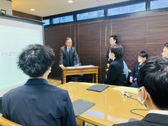 「配属先通達式」では、社長から直接、激励の言葉とともに春から配属となる店舗を内定者へ通達しました。また、配属先の通達後には、内定者それぞれが試行錯誤して作成した個性豊かな「自己紹介シート」を使用し、意気込みを交えて自己紹介を行いました。それぞれの工夫された自己紹介を受け、会長、社長、各事業部本部長からは期待の言葉とともに、内定者への熱いエールが贈られました。