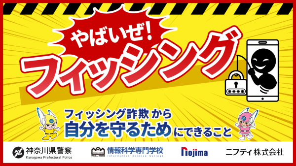 株式会社ノジマ(神奈川県横浜市、代表執行役社長・野島廣司、以下、ノジマ)とノジマグループのニフティ株式会社(東京都新宿区、代表取締役社長・前島一就、以下、ニフティ)は、神奈川県警察本部サイバー犯罪捜査課および学校法人岩崎学園 情報科学専門学校(神奈川県横浜市、理事長・岩崎文裕)のサイバー防犯ボランティアと共同で、インターネットに潜むフィッシング詐欺(注1)被害防止を目的とした啓発動画を制作しました。