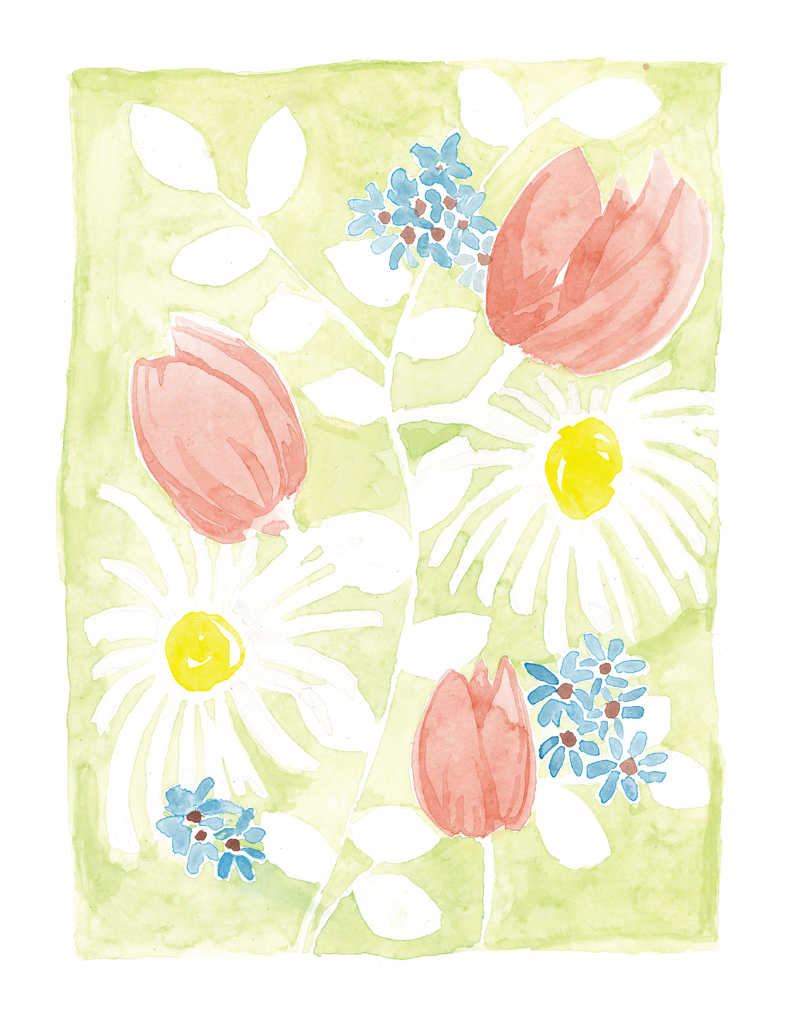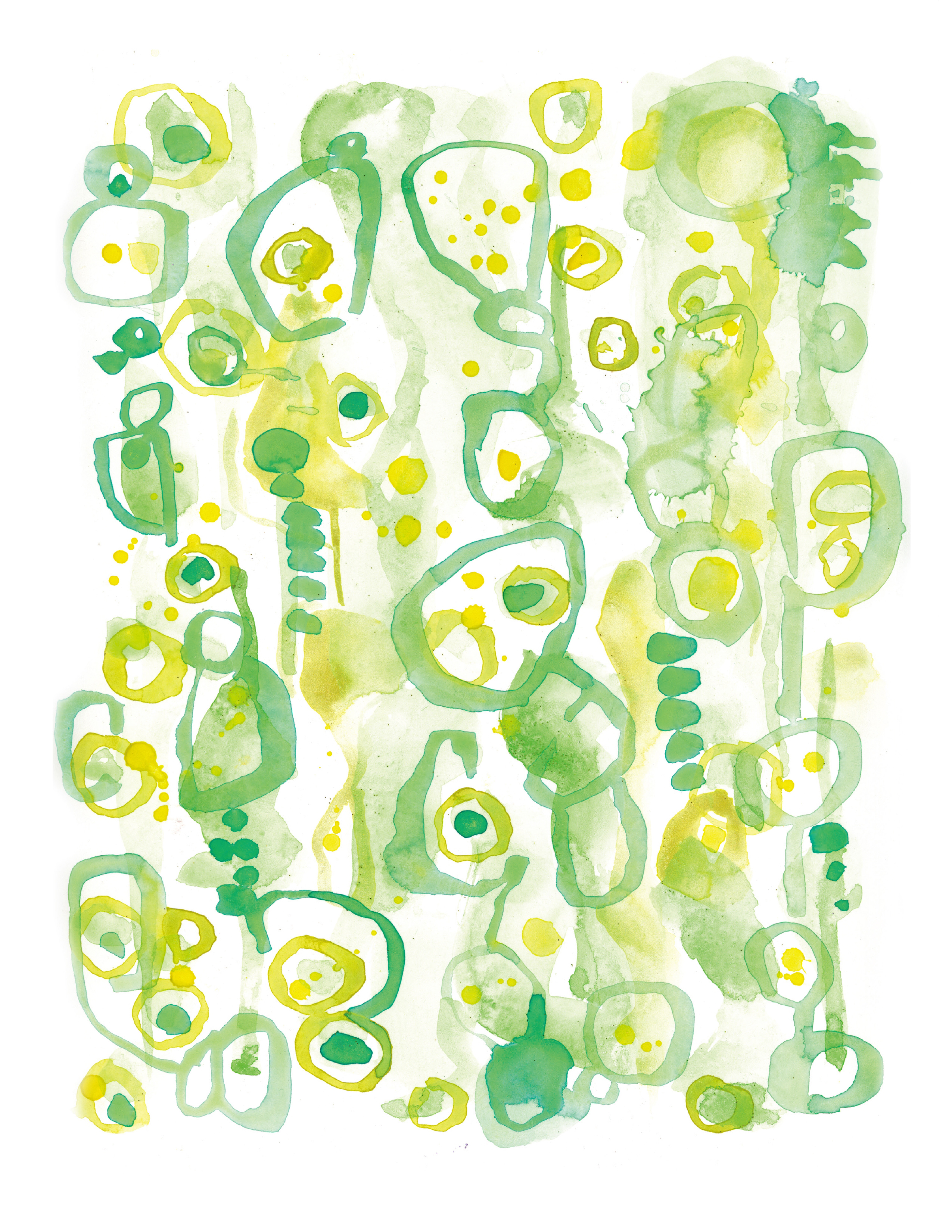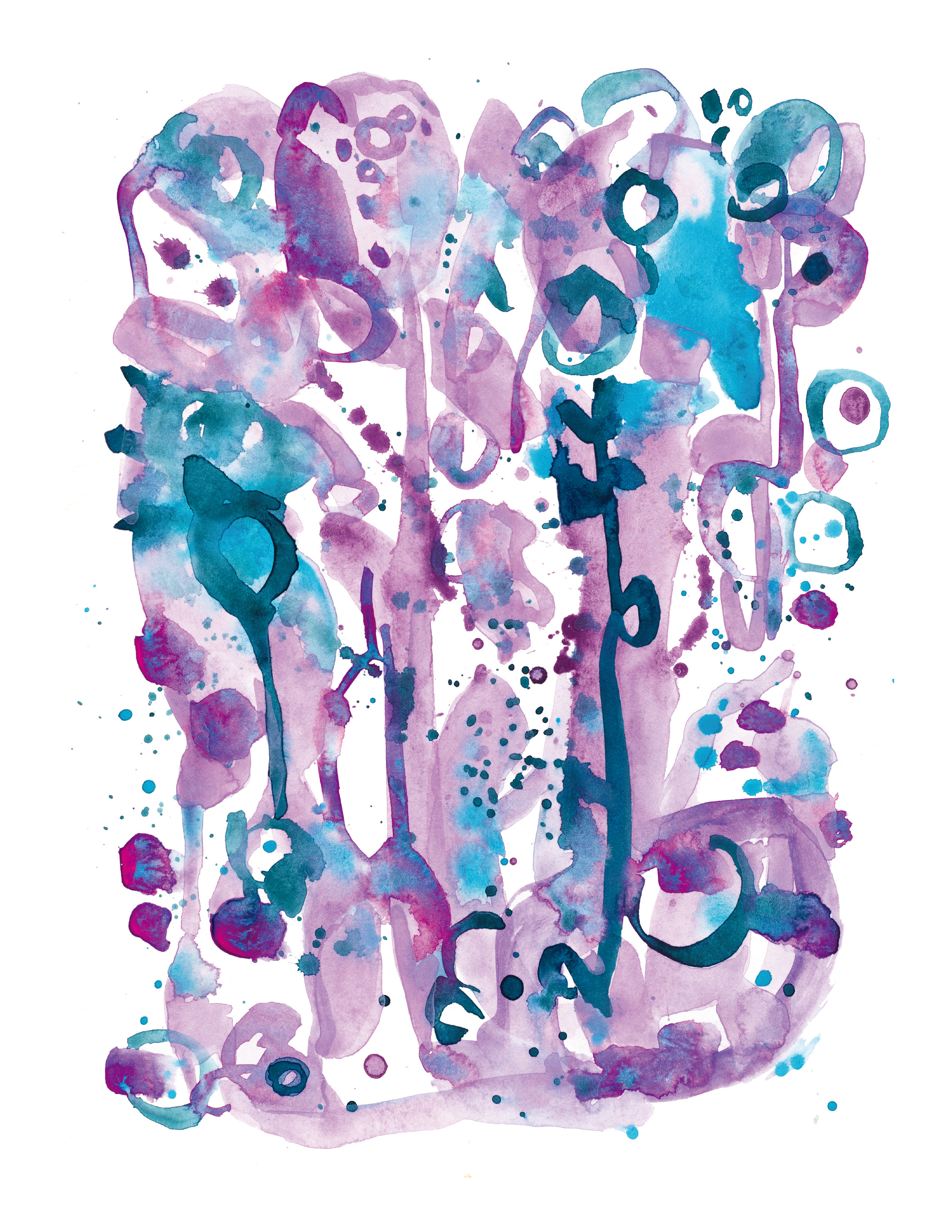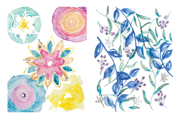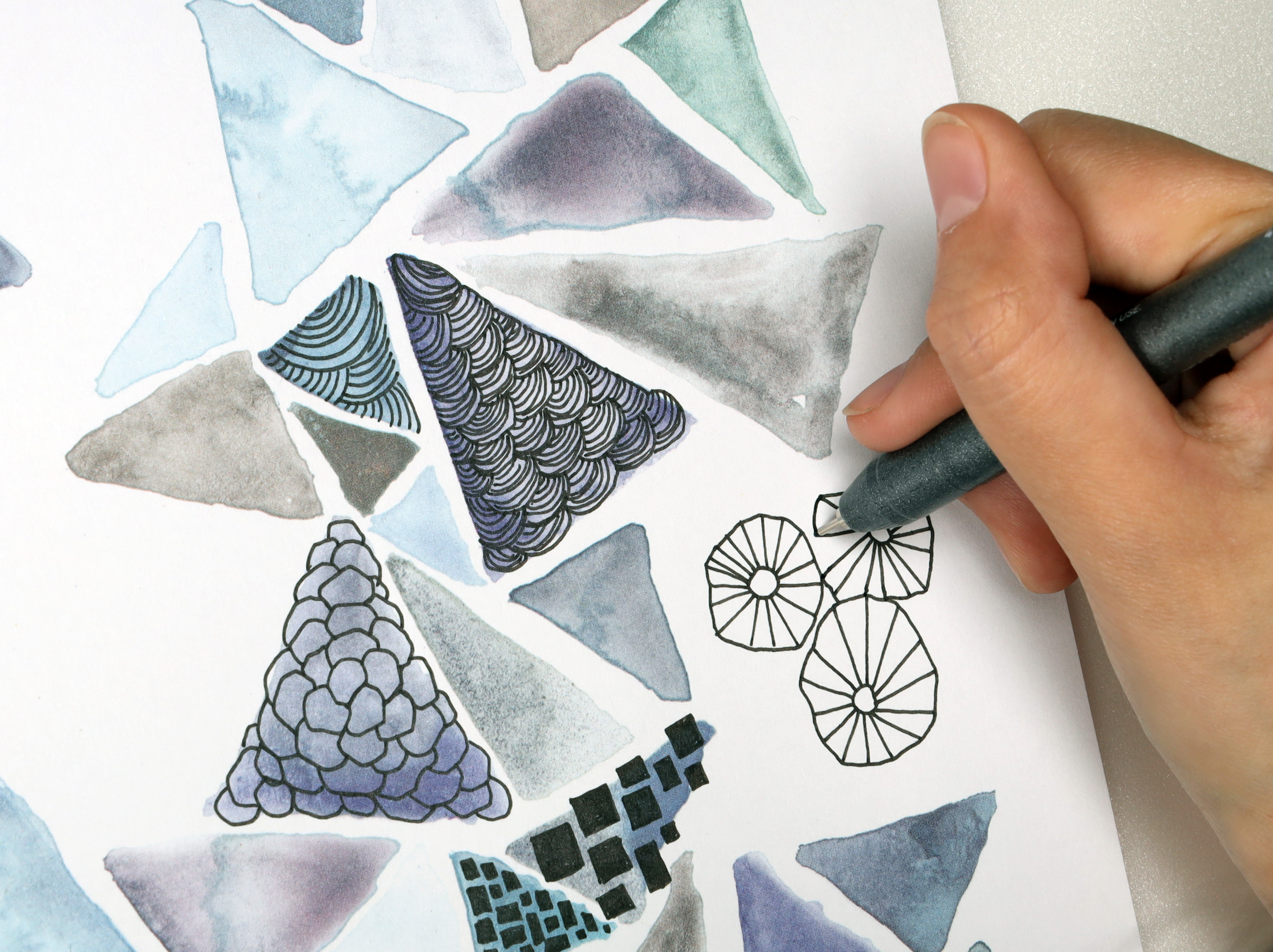 水彩タッチのペイントがすでに施されているので、そこに自由な感性で線を描き入れてアートを完成させます。