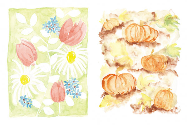 春夏秋冬の移ろいを感じさせる色彩のページが満載! 心のおもむくままに線を加えていきましょう。