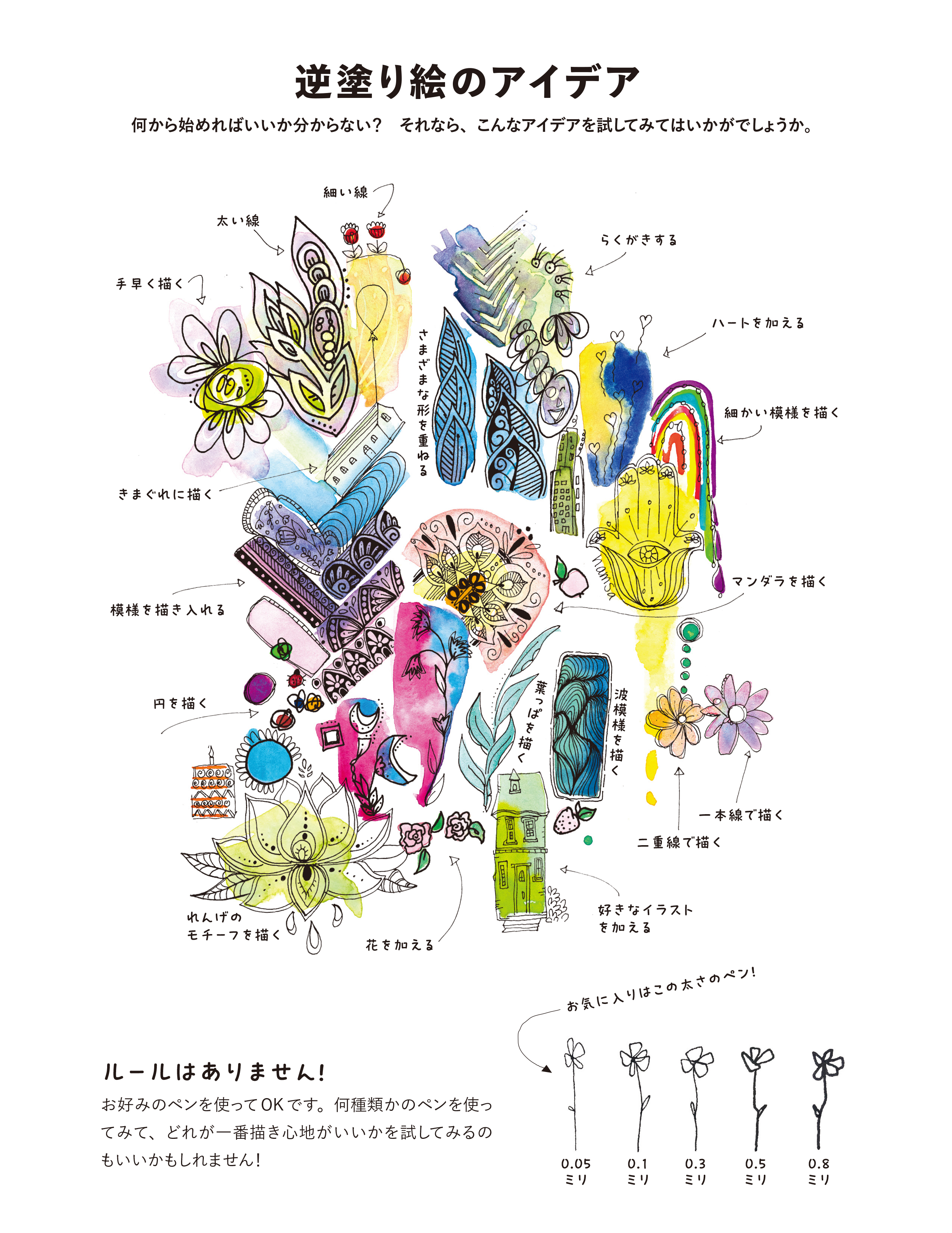 感性のおもむくままにペンを走らせる「逆塗り絵」は、リラックスやストレス解消、マインドフルネスのツールとしても大人気。