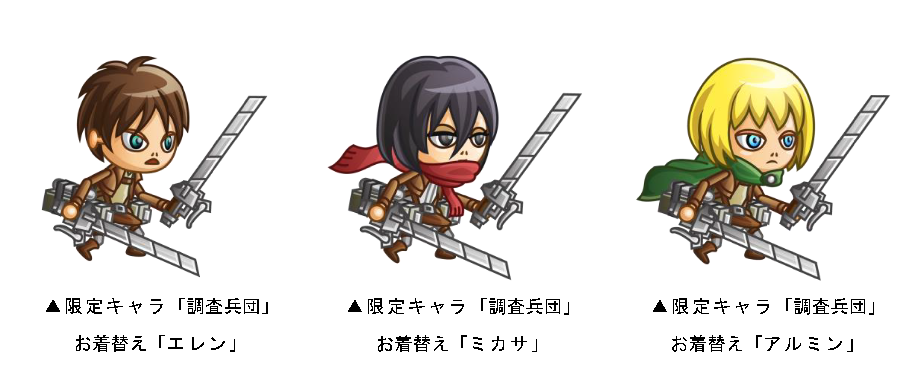 ※キャラ「調査兵団」は3月18日(月)19:00よりEGGショップに追加予定です