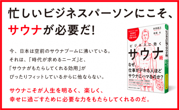 新刊書籍『ビジネスに効くサウナ術』(著者:本田直之/松尾大)を3月19日(火)に発売いたします。