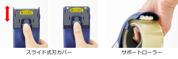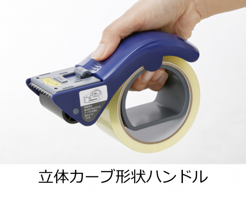 本製品はそうした梱包作業に伴うさまざまな課題に対応。手になじみ、グッとしっかり握れるハンドル形状、切断のタイミングを2段階に分けることで、ズバッと快適に切れる長短2段刃、粘着面が貼り付きにくいため、テープの引き出しやセットがスムーズにできるシリコンローラーなど、文具開発のノウハウをいかした機能の搭載により、快適な梱包作業を実現します。