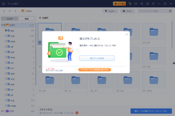 Step 3.スキャン後、検出したファイルのリストで条件を設定することで目標ファイルを特定することが可能です。プレビュー機能によってファイルの内容を前もってチェックしてから復元することができます。