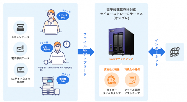 セイコーソリューションズ株式会社(代表取締役社長:関根 淳、本社:千葉県千葉市、以下 セイコーソリューションズ)は、2024年3月15日より、電子帳簿保存法に対応する機器設置型のサービス「セイコー ストレージサービス for 電子帳簿保存法」の提供を開始します。