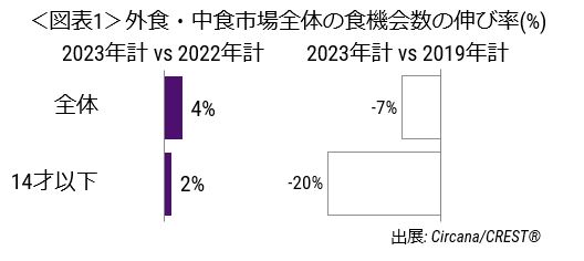 2023年は食機会数前年比4%増、子どもとの外食控えが足を引っ張る