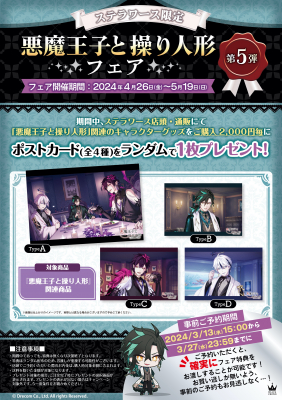 BLACK CROWNがお贈りする悲しくも儚いダークファンタジー『悪魔王子と操り人形』のフェア《第5弾》が、2024年4月26日(金)~2024年5月19日(日)の期間、ステラワース店頭・通販で開催決定!