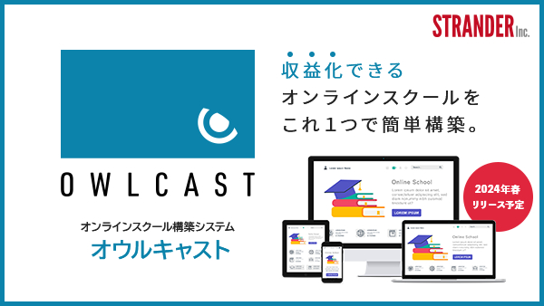株式会社ストランダー(本社:東京都新宿区、代表取締役:青木大輔)は、2024年春頃に、教育用途向けの新製品:オンラインスクール構築システム「オウルキャスト」をリリースすることといたしましたので、お知らせいたします。具体的なリリース日は改めてご案内いたします。