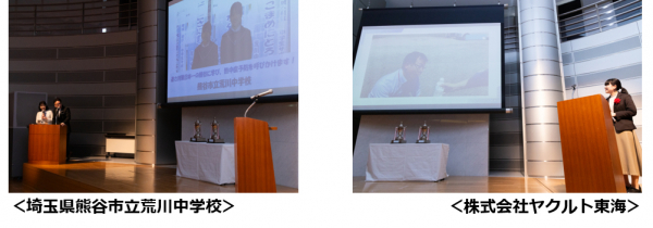 <行政部門>埼玉県熊谷市立荒川中学校、<企業・民間団体部門>株式会社ヤクルト東海