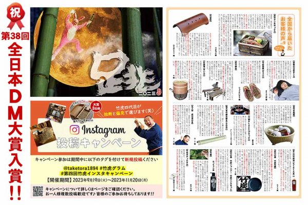 虎斑竹専門店 竹虎(運営:株式会社山岸竹材店)は第38回全日本DM大賞において入賞したことを発表しました。入選作品は2023年竹虎年賀状やオンラインショップの商品発送時の同梱物、計3点であり、ソフトバンク様、グーグル様、第一生命保険様、TOPPANエッジ様など大手企業様と共に受賞いたしました。この受賞は、竹虎がお客様とのコミュニケーションに真剣に取り組んでいる証しであり、竹虎の努力と創造性が評価されました。