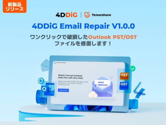 Tenorshare が提供する新製品 - Outlook メールデータ修復ソフトウェア「4DDiG Email Repair」が 3 月 19 日(火)にリリースされました。