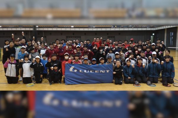 また、3月2日にはルーセントソフトテニス実業団チームの星名、河村をはじめとするアスリートスタッフによる「ソフトテニス講習会」を実施しました。小学生から中学生の主に競技歴1年未満の生徒は初級クラス、経験者を上級クラスに分けて指導を行いました。