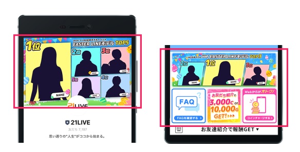 公式LINEは、21LIVEからのお知らせを受け取ったユーザーが必ず目にする場所。