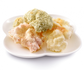 味は「えび・塩味」「のり・塩味」「あっさり塩味」の3種類。各味ごとに美味しさにこだわった原材料を使用しています。